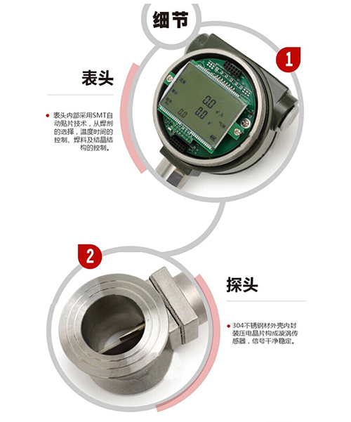 分體式渦街流量計(jì)由流量傳感器、溫度傳感器、壓力傳感器和智能流量顯示積算儀四部分組成,具有智能溫度、壓力補(bǔ)償功能,由智能流量顯示積算儀遠(yuǎn)程顯示介質(zhì)溫度(℃)、工作壓力(MPa)、瞬時(shí)標(biāo)況體積流量(m³/h)和累計(jì)標(biāo)況體積流量(m³)。