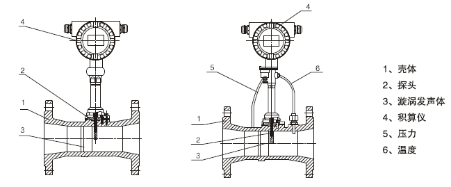 3、檢測元件不與介質接觸,性能穩定,使用壽命長 傳感器采用檢測探頭與旋渦發生體分開安裝,而且耐高溫的壓電晶體密封在檢測探頭內,不與被測介質接觸,所以渦街流量計具有結構簡單、通用性好和穩定性高的特點。