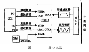 HT2012芯片用來實現HART協議中通訊信號的解調及調制過程。圖2為調制解調器與微處理器的連接。