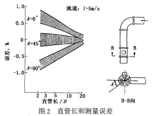 2000年上海原水公司擬在已建成的某泵站加裝DN2200化工生活污水流量計,但彎管下游安裝位置的前直管長度明顯不符合規定中5D~10D(D為管徑,下同)的要求,此時,影響測量誤差有多大呢?