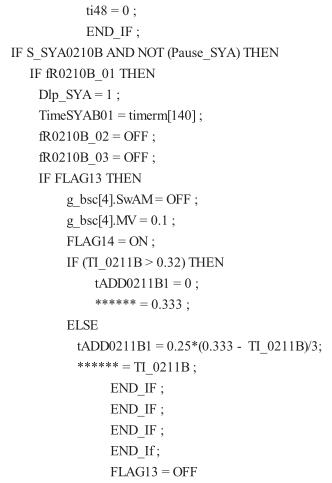 (3)從 80℃升溫到 105℃,用時 120 min。升溫梯度=(105- 80)/24 = 1.04℃/300 s,蒸汽閥*大開度為 40%。根據(jù)多次生產(chǎn)經(jīng)驗總結(jié),進入該階段前 60 min,設(shè)定一個*低閥限 10%,可以避免釜溫波動過大;在該階段后期,如果蒸汽閥長時間保持較大的開度,就會造成反應(yīng)結(jié)束時釜溫沖到 110℃以上,影響二氯乙烷回收品質(zhì),所以在這一步有兩個特殊限制條件:①當釜溫 >100℃,蒸汽閥門開度 >15%且持續(xù)保持 20 min 以上,升溫速率>1.05℃/400 s 時,自動關(guān)閉蒸汽閥;②當該步進行時間大于 95 min 且蒸汽閥門開度 >16%持續(xù)保持 400 s 時,關(guān)閉蒸汽閥。