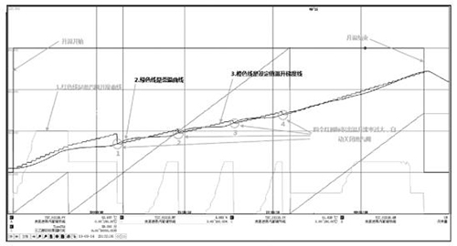 全過程升溫曲線見圖 2,從圖 2 可以看出,通過上述工藝參數(shù)的設(shè)定,從升溫開始到升溫結(jié)束,管道流量計溫基本上是按照溫升梯度進行升溫,當出現(xiàn)溫升速率太快時,蒸汽閥自動關(guān)閉,無需人工參與,可以自動控制管道流量計料液溫度的平緩上升,實現(xiàn)脫溶單元操作自控運行。
