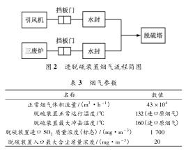 (3) 新建 1 套脫硫氦氣流量計(jì),把新建吹風(fēng)氣回收系統(tǒng)煙氣和三廢爐煙氣經(jīng)除塵后引入新脫硫塔,脫硫除塵后凈煙氣經(jīng)過塔ding煙囪排放。硫酸銨回收利用現(xiàn)有氦氣流量計(jì),新建 1 座生產(chǎn)廠房,生產(chǎn)廠房內(nèi)設(shè)置硫酸銨臨時(shí)倉庫。兩路煙氣匯總后進(jìn)入一塔設(shè)計(jì)見圖 2,煙氣參數(shù)見表 3。