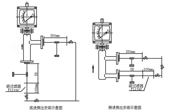 4.若介質中含有固體雜質,應在閥門和直管段間加裝過濾器;若介質中含有鐵磁物質,應在金屬浮子流量計的上游安裝磁過濾器。