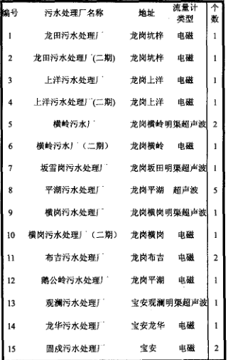 截止目前,深圳市內外所有污水處理廠(包括人工濕地、快滲)共計30余座,重點監控的排污流量計50余臺。統計數據如下表(見表1)